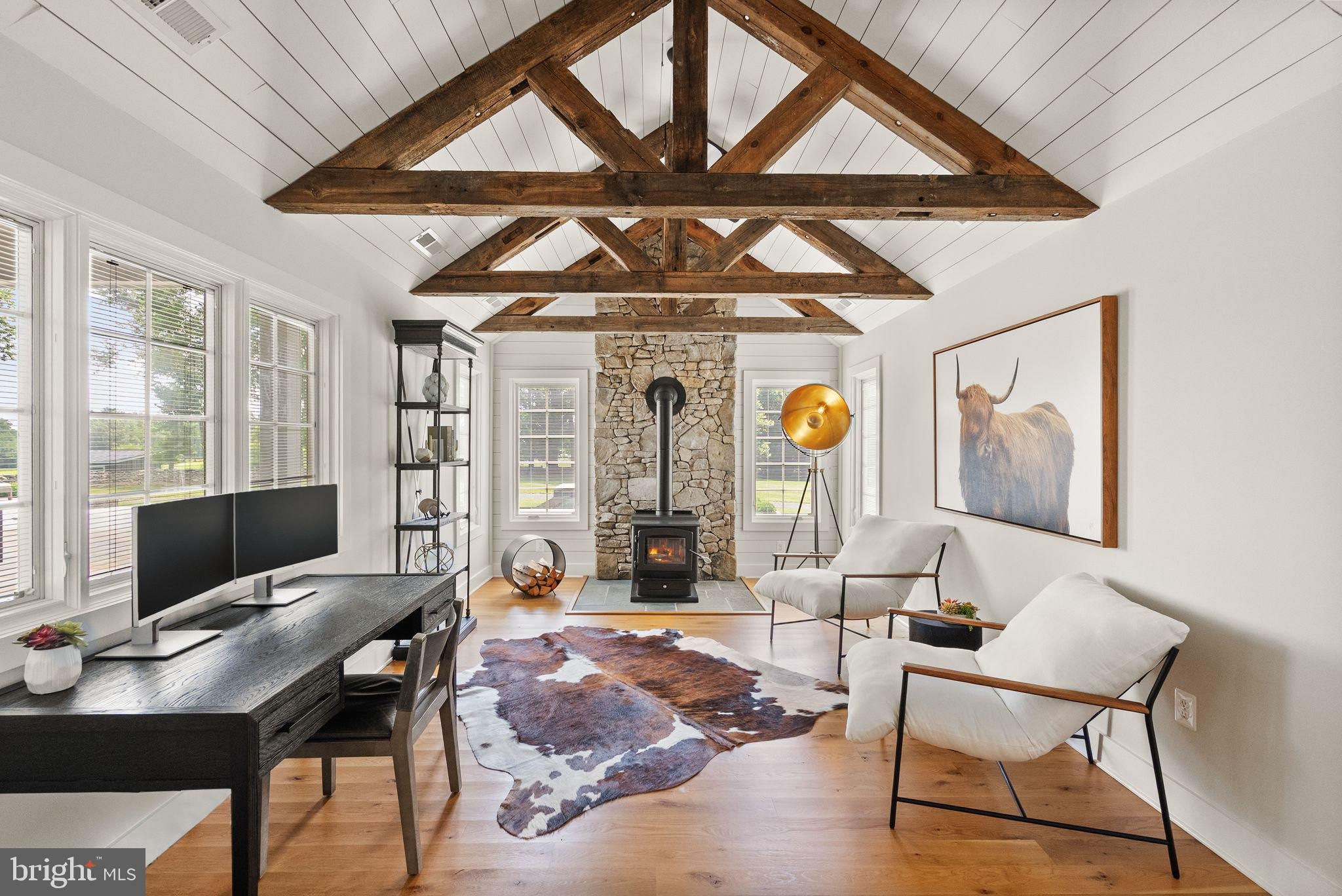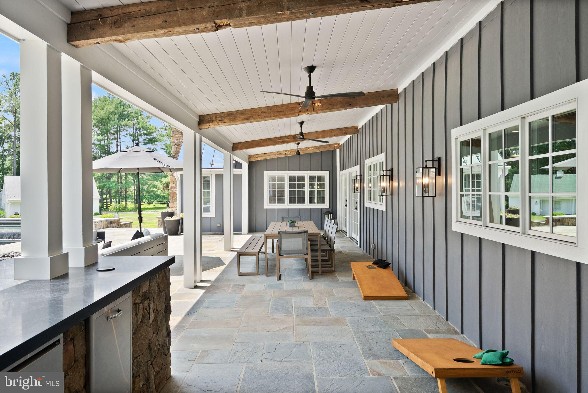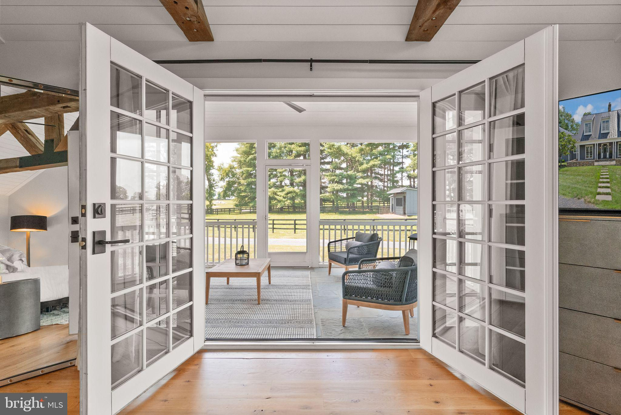 A completely reimagined estate designed in collaboration with renowned Middleburg architect Timothy Clites. This modern farmhouse is a breathtaking fusion of refined luxury and timeless equestrian elegance, set on 12 acres in the coveted Atoka Chase community with paved roads. An entry framed by original historic stone walls leads to a home and barn cottage that has been completed to the highest standard, surrounded by expansive stone porches capturing panoramic views of rolling pastures and the Blue Ridge Mountains on all sides. Every room was intentionally positioned to frame the intensely beautiful sunrises and sunsets, offering panoramic views from every window and filling the home with natural light from dawn to dusk. Inside, the thoughtful floorplan blends traditional craftsmanship and contemporary sophistication with oak hardwood flooring, shiplap walls and ceilings, vaulted spaces featuring exposed antique beams sourced from local barns, custom closets, designer lighting, heated tile floors and ceiling fans throughout. The main-level primary suite offers incredible western sunset views, a private outdoor screened porch and a bath with heated floors and towel racks. A study with a wood stove and an adjacent office/guest suite is equipped with high-speed fiber internet for seamless remote work and access to an additional full bath all on the main level. The chef’s kitchen is both striking and efficient, featuring heated floors, a gas range, two dishwashers, ice maker and stainless-steel appliances. French doors off the mud room open to the rear covered porch and outdoor kitchen offering a one and only outdoor entertaining space. The living room centers around a dramatic stone wood-burning fireplace, pool views to one side and mountain views out the other. The upper level includes three additional bedrooms and two full baths, each with hardwood flooring, heated tile floors and towel warmers. Large dormer windows provide abundant natural sunlight and mountain views. Every mechanical and electrical system is updated, reflecting the level of detail and investment poured into this property. There is a large unfinished basement with a bathroom rough-in and fireplace. The outdoor living experience rivals a private resort, with a heated saltwater infinity pool and spa overlooking the pastures, Sonos surround sound system, a flagstone patio, gas firepit, a fully equipped outdoor kitchen with gas grill, refrigerator, and a dedicated ice maker. The property is a turnkey horse facility with board-fenced pastures, automatic waterers, electric fencing, run-in sheds with electric and individual two-stall barns—all lined with oak milled from Middleburg trees and clad to match the main residence for perfect visual harmony—as well as a dedicated tack room, covered parking/equipment storage, and a comprehensives smart home security system with exterior cameras for full remote monitoring and peace of mind. Every detail was curated to balance beauty, efficiency, and the ease of a true horse lifestyle. This property is more than a home; it is a masterwork of architecture, design, and lifestyle—an unparalleled Middleburg estate where luxury, privacy, and function meet.