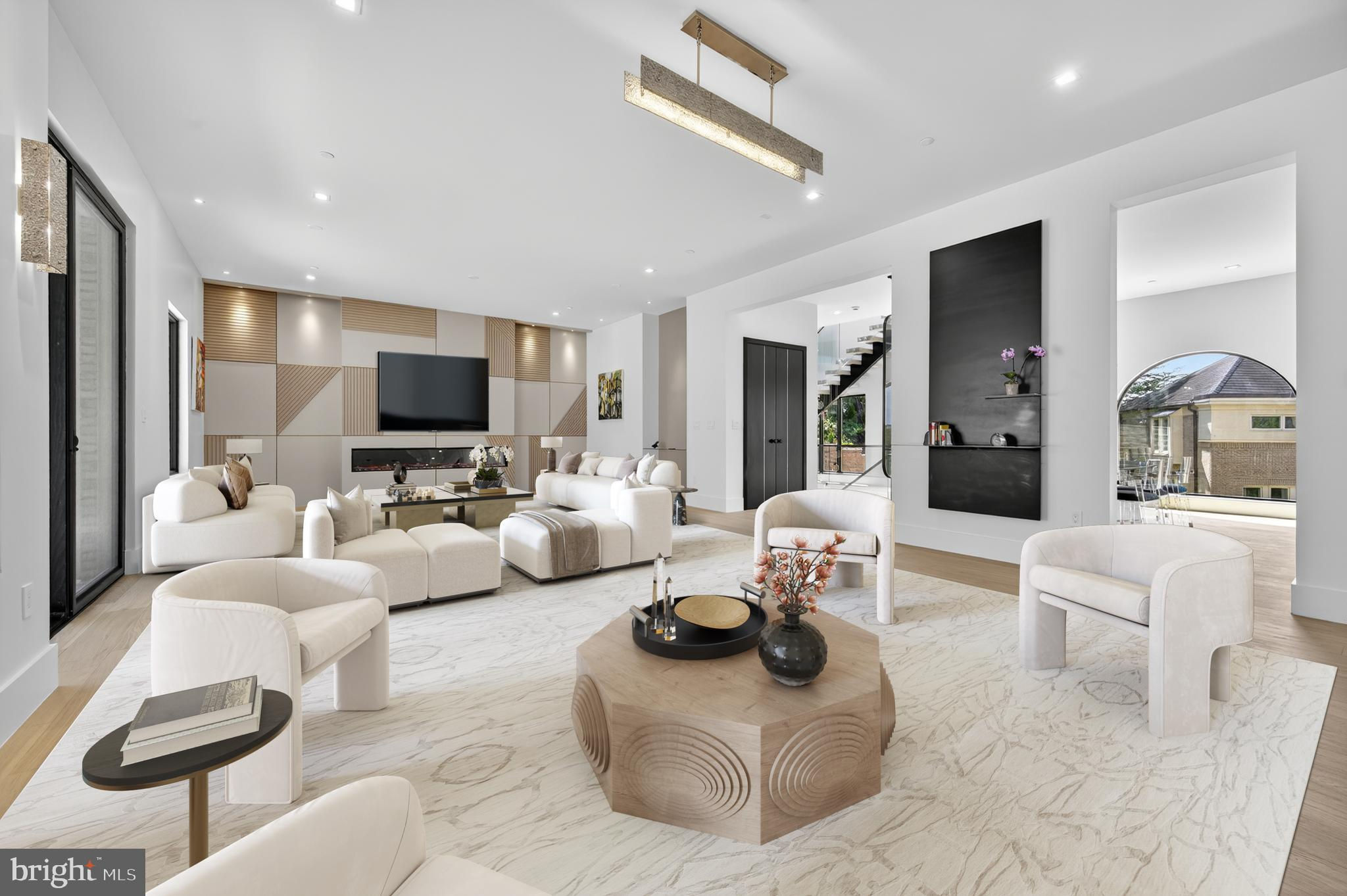 Stunning brand new, ground up 2025 build on one of the last available lots in the Foxhall Corridor! Located just minutes from the business and cultural centers of Washington, this property sits in a quiet, private enclave near several Embassy residences. and other prestigious homes. While the exterior is inspired by the late renowned architect Arthur Cotton Moore, the interior is a glamorous 6700+ square feet of exceptional entertaining and living space, with the highest level of finishes available today. Sited on a third of an acre, this light-filled and elegant home features 5 bedrooms, each with an ensuite bath, an open-concept kitchen/ family room, a banquet-sized dining room, a gym with a sauna, a home office, a theatre and an elevator to all levels. Outside a large terrace with a fountain and tiered landscaping provide privacy. A two-car garage with two plug-in electric car chargers and additional parking complete this special offering.